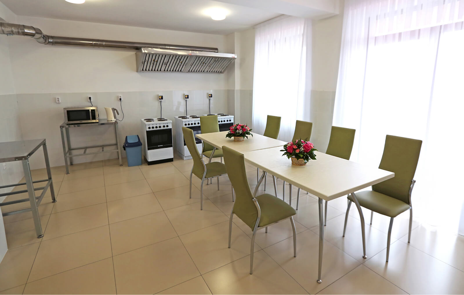 Уютные комнаты общежития позволят каждому студенту чувствовать себя как дома. Здесь есть все для того, чтобы чувствовать себя максимально комфортно: душевые комнаты, балетные и танцевальные классы, классы для саморазвития, спортивные комнаты с тренажерами и шведскими стенками, кухни, умывальные и туалетные комнаты.